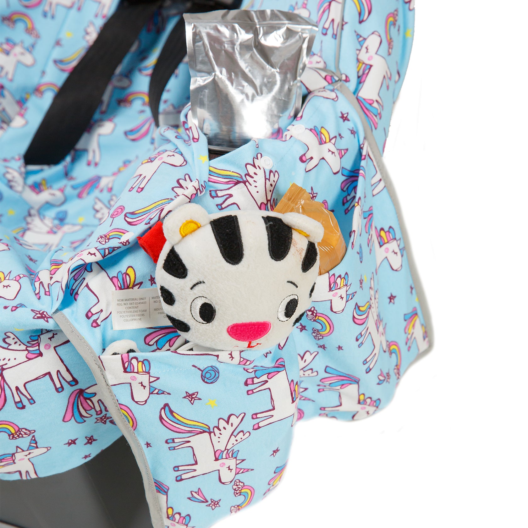 Niko Easy Wash Children's Car Seat Cover in 100% Cotton, Blue with Unicorn Print