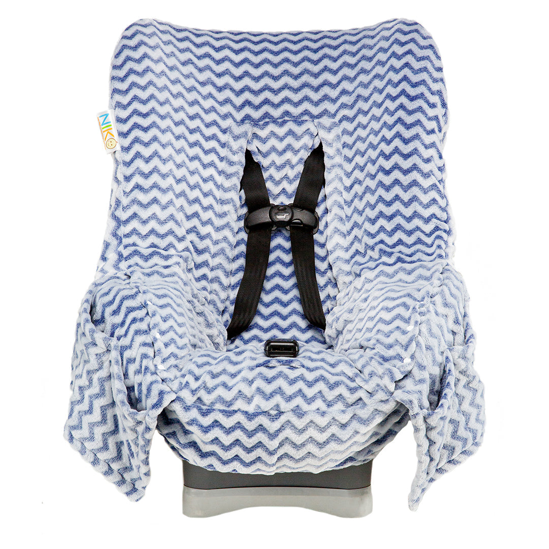 NIKO Easy Wash Children's Car Seat Cover in Blue Chevron Plush